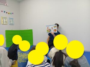 感染症予防に関する紙芝居をみて、どうしたらウィルスに感染してしまうのかや、正しい手洗いの仕方などを学びます。